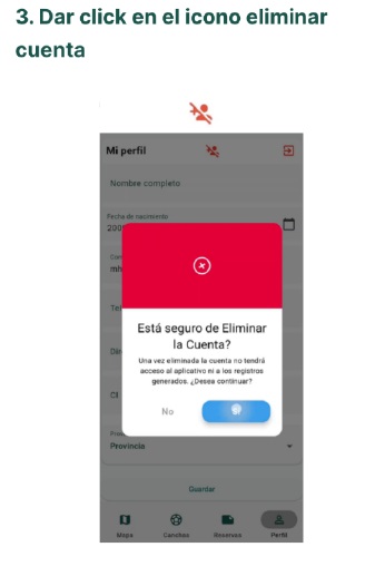 Proceso para eliminación de cuenta Alpeloteo-Reservar canchas.