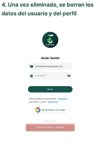 Los datos personales recopilados quedan eliminados una vez se elimine la cuenta de la plataforma Alpeloteo.